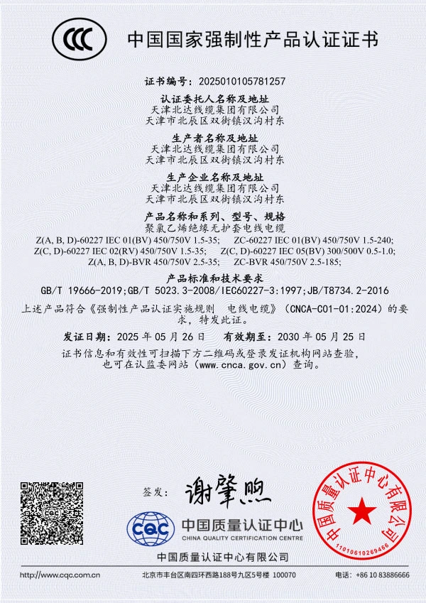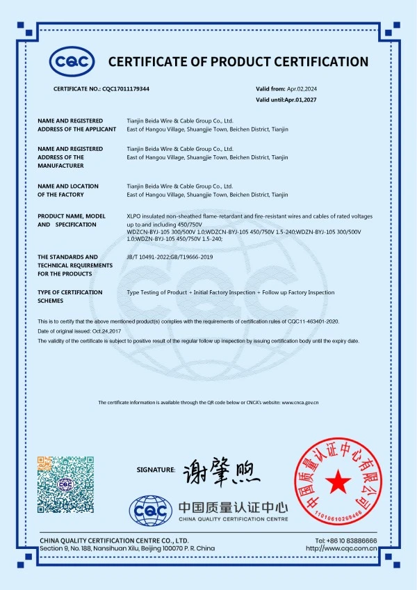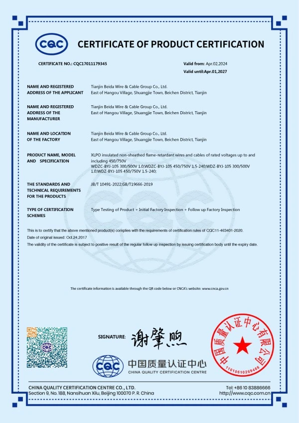 Siden etableringen har selskapet alltid tatt "Produsert med dedikasjon, kvalitet fra Beida" som sin bedriftsutviklingsvisjon og holdt seg til "People-Oriented, Integrity-Based" som det grunnleggende prinsippet i sin virksomhet. Den har suksessivt oppnådd ISO9001 kvalitetsstyringssystemsertifisering, ISO14001 miljøstyringssystemsertifisering, OHSAS18001 sertifisering av arbeidshelse og sikkerhet, CCC National Product Certification, National Industrial Production License Certification og Photovoltaic Product Certification. Selskapets produktstandarder implementerer kvalitetspolitikken "Overgå nasjonale standarder, sikre kvalifisert produktytelse". Produksjonsprosessen gjennomgår strenge inspeksjoner på flere nivåer, inkludert inspeksjon av innkommende råvarer, selvinspeksjon under prosessen, patruljeinspeksjon og utgående inspeksjon fra fabrikken, for å sikre at alle Beida-produkter som kommer inn på markedet er fri for kvalitetsfarer, noe som gir kundene trygghet, tilfredshet og trygghet.