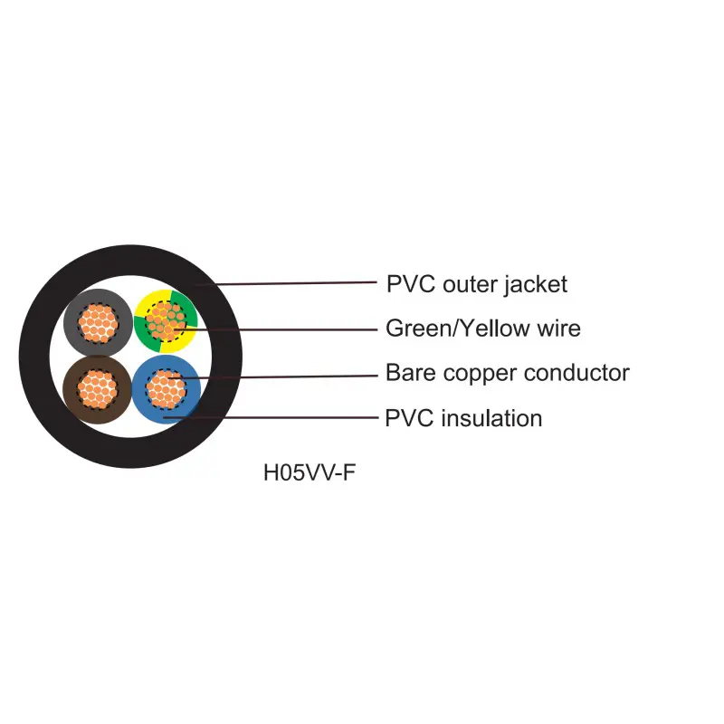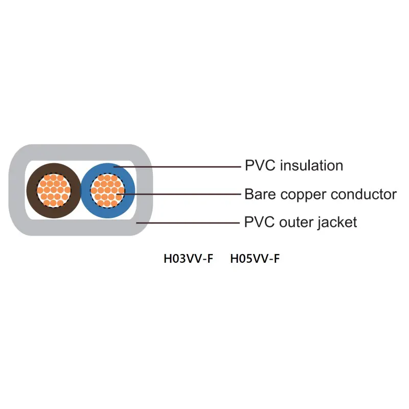 H05VV-F, H05VVH2-F, H03VV-F, H03VVH2-F er sammensatt av klasse 5 fine kobberledere, blyfri PVC-isolasjon og kappe.